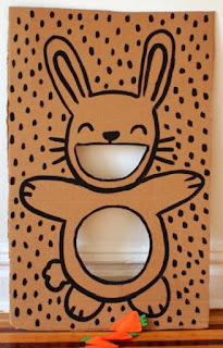 Χρησιμοποιήστε ένα κουτί και μετατρέψτε το σε έναν κούνελο. Αφήστε μεγάλο άνοιγμα για το στόμα του και βάλτε μια κόκκινη λωρίδα κόκκινου χαρτιού για γλώσσα του. Σταθείτε ένα μέτρο μακριά από τον κούνελο και πετάξτε στο στόμα του μπαλάκια ή πλαστικά αυγά.